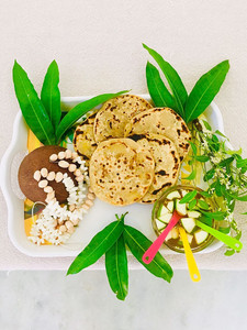 Trees and plants in India play a pivotal role in cultural and spiritual traditions, with each species associated with distinct symbolism. Ugadi, recognised as the Hindu Lunar New Year, signifies the commencement of the new year and the arrival of spring in various South Indian states, including Karnataka, Andhra Pradesh, and Telangana. The neem tree is significant in this festival; its bitter flowers are essential in Ugadi Pachadi, a dish representing six flavours that symbolise various experiences and emotions of life [9]. Banana leaves are used in religious offerings and are made into biodegradable plates for festive meals, whereas mango leaves are hung across doorways in temples and homes during rituals to invite prosperity and good fortune. Sacred trees, which are ancient or situated in areas of spiritual significance, hold a revered status in Indian culture. Devotees tie colourful ribbons and strings along with various offerings to tree trunks as expressions of prayer or gratitude, thereby deepening the unique connection between humans and the natural environment. Ugadi signifies the onset of spring and commemorates the creation of the universe by the God Brahma. Mother Nature is believed to wake up from a long slumber and spread a blanket of greenery over the earth, giving it a new look by giving birth to new plants, shoots and leaves [10].